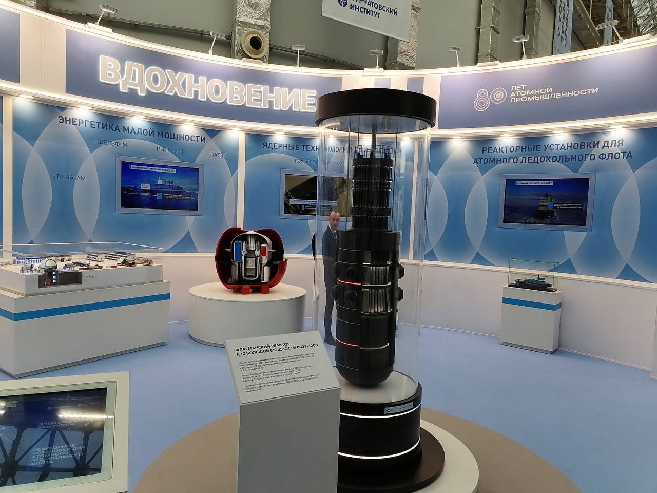 В рамках конгресса работает выставка, где Росатом представляет масштабные мультимедийные инсталляции, рассказывающие о реализации принципов замкнутого ядерного топливного цикла – технологических решениях для устойчивой и безопасной энергетики будущего. На стенде также размещен макет Национального центра физики и математики.